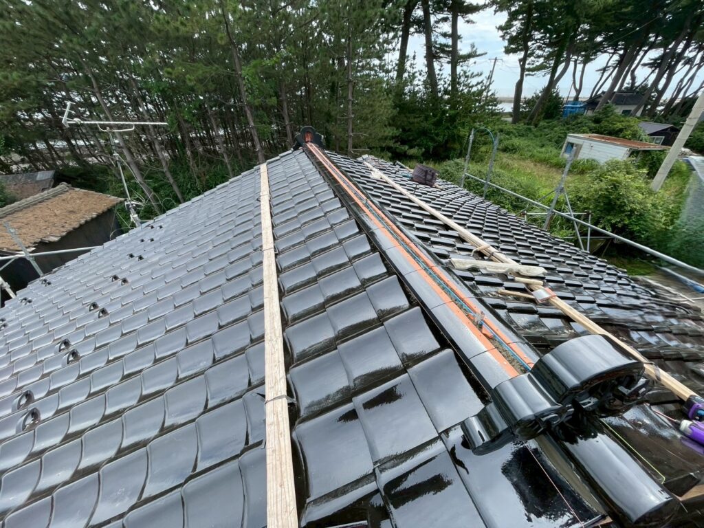 和形49判から『防災和形瓦』に葺き替えしました。