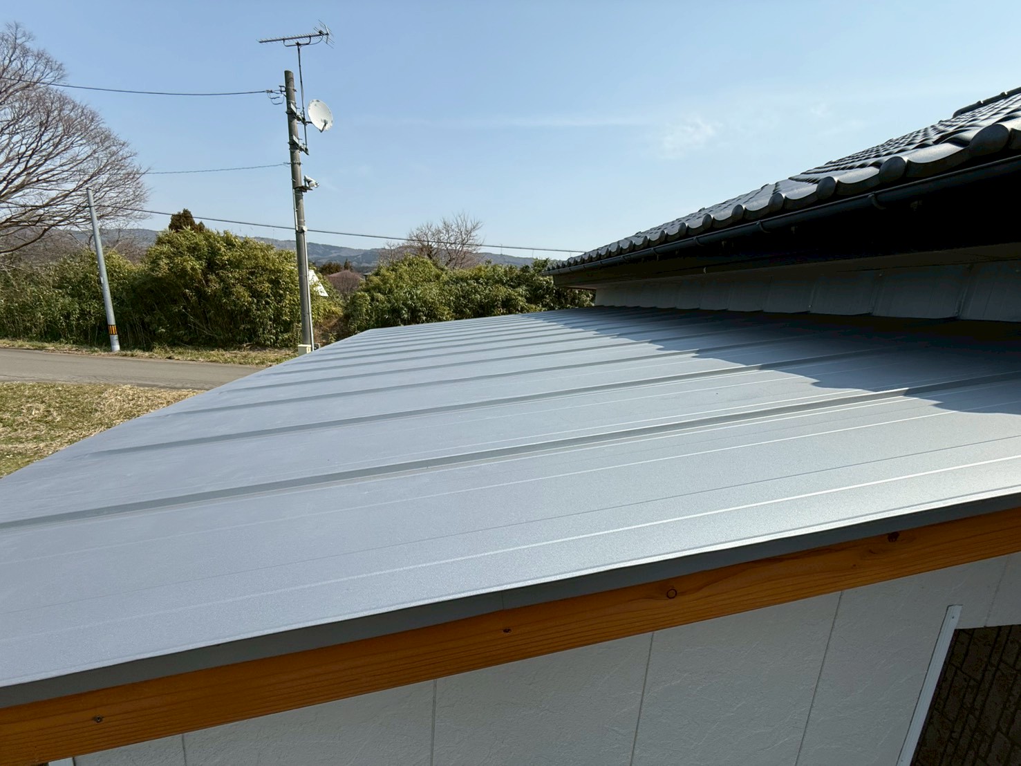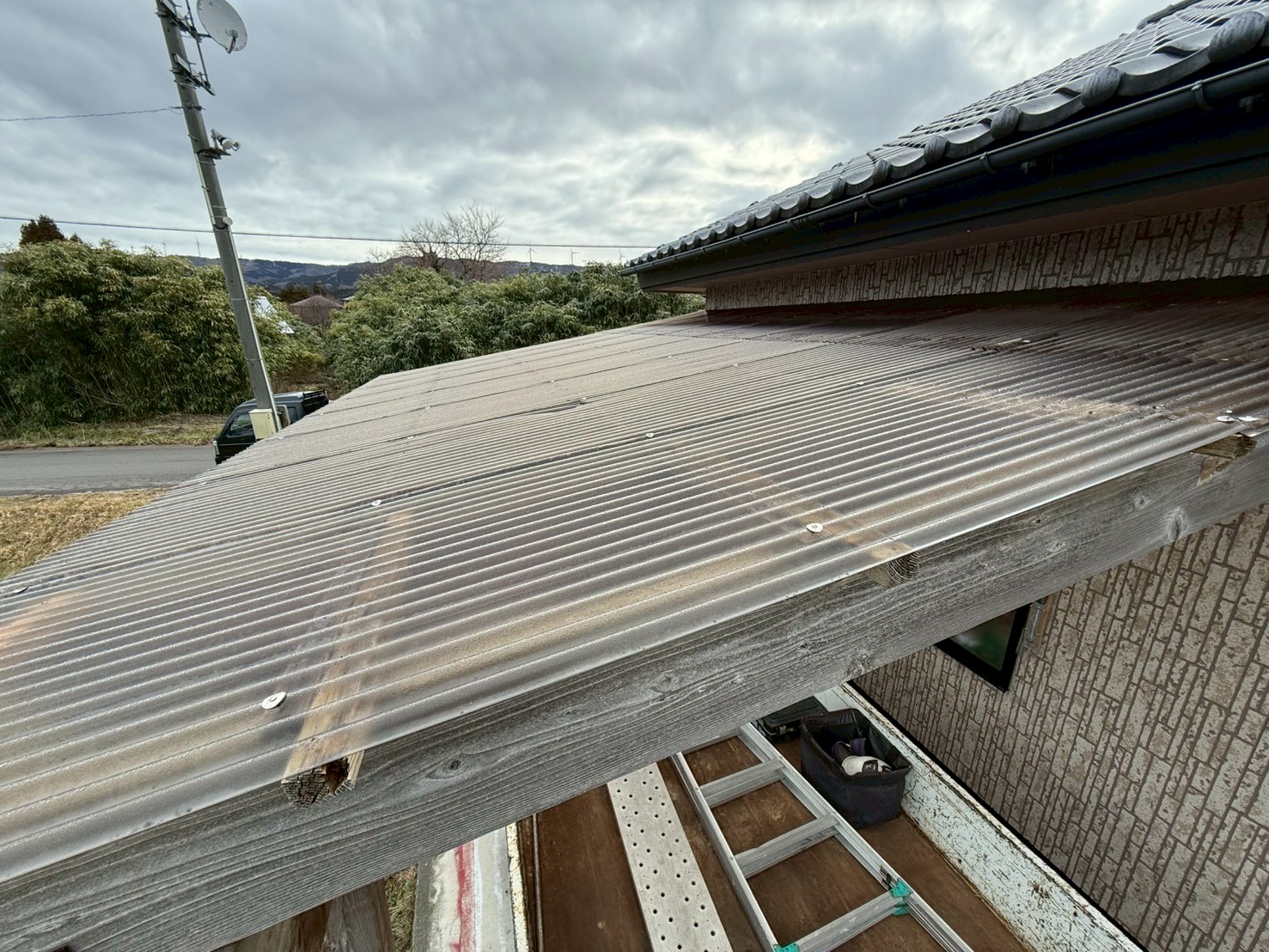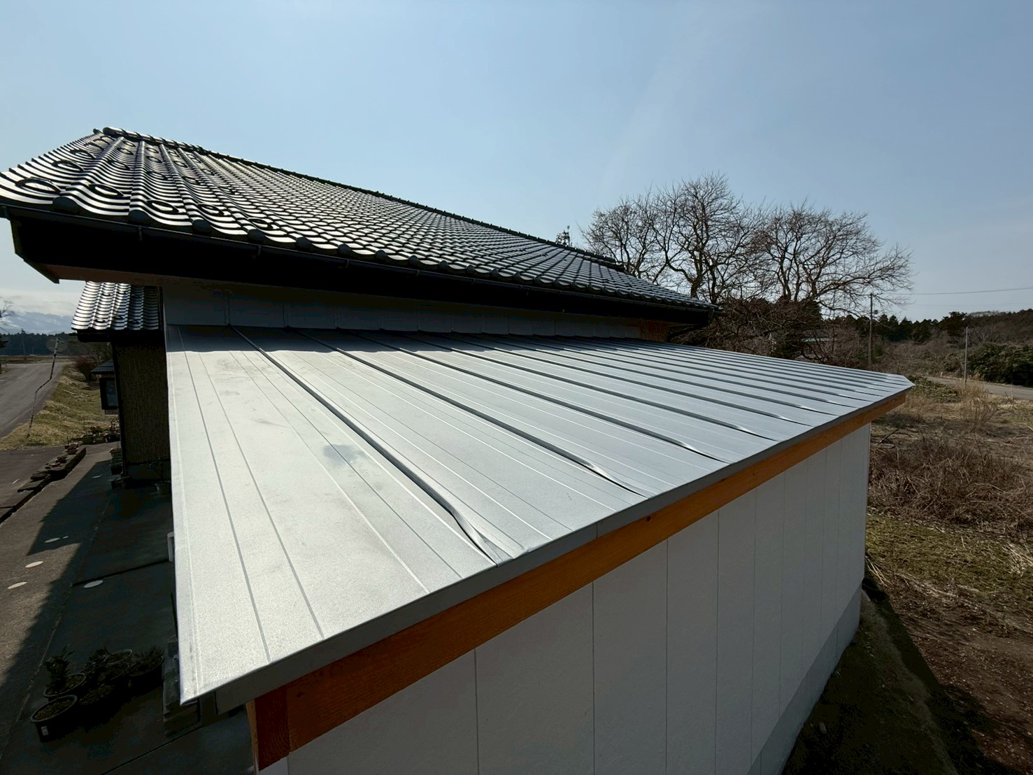 にかほ市K様邸 波板屋根を金属屋根にリフォームしました。